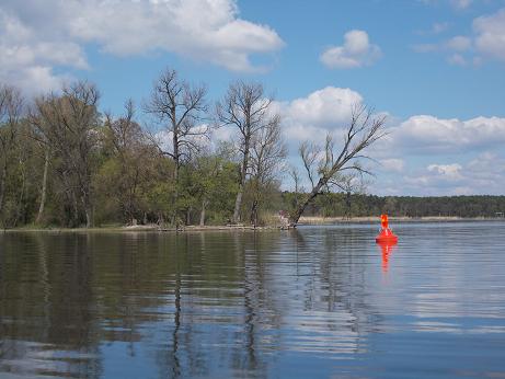 Der Wind hat auf West gedreht. Unter Segel geht es flott weiter. Dank des Rückenwindes ist es möglich, durch die vielen idyllischen Nebenarme der Havel zu segeln. Kreuzen wäre hier nicht möglich, da ich wegen der geringen Tiefe das Schwert hochkurbeln muss und den Motor möchte ich auch nicht benutzen.