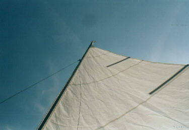 kräftiger Wind, so dass wir Mühe haben, das Segel hoch zu ziehen.