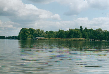 es. Wir rudern am Kohlgarten vorbei, einer Halbinsel, auf der wir gestern