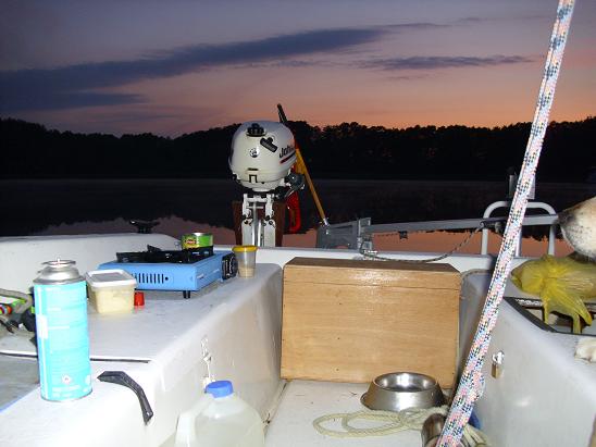 Am nächsten Morgen ist strahlender Sonnenschein. Bevor ich Kaffeewasser aufsetze schwimme ich noch eine Runde ums Boot. Hier auf dem See gibt es natürlich keine frischen Brötchen, aber wir haben noch fast ein ganzes Brot.