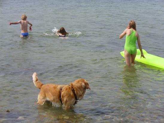 Am Strand ist es zwar sonnig, aber auch windig und dadurch kühl. Die Kinder sind trotz dem lange im Wasser, sie sind wie immer kälteresistent.