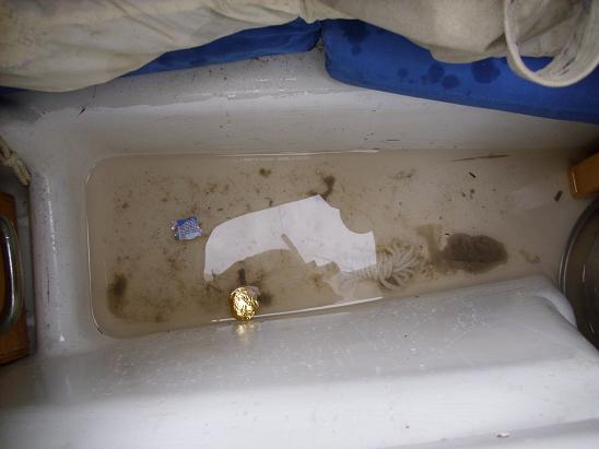 Am Kiosk essen wir Eis, das haben sich die Kinder heute verdient. Dann machen wir klar Schiff. In der Bilge, wo aber auch unsre Füße sind, wenn wir am Tisch sitzen und nachts der Hund schläft, schwappt das Wasser 2 cm hoch umher. Einige Polster, Kleidungsstücke und Schlafsäcke sind nass geworden. Die eine oder andere Welle hat wohl doch zumindest teilweise den Weg durch den Schwertkasten ins Bootsinnere gefunden.