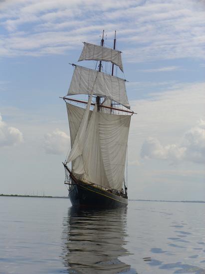 Die meisten anderen Boote fahren wie wir unter Motor. Nur ein paar große Traditionssegler dümpeln mit schlaffen Segeln herum.
