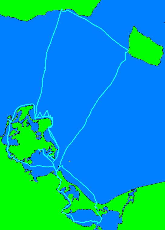 In der Mitte des Verkehrstrennungsgebiets, also der Trennzone, stehen massenweise Netzfahnen. Nach links und rechts so weit das Auge reicht und auch auf einem wesentlich breiteren Streifen, als die in der Karte eingezeichnete Trennzone von einer Seemeile Breite. Ausweichen unmöglich, es ist kein System zu erkennen. Mit leicht hochgekurbeltem Schwert fahre ich einfach drüber, in der Hoffnung, nicht hängen zu bleiben.