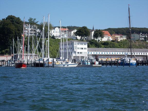 Heute wollen wir nach Sassnitz. Vor 10 Tagen sind wir diese Strecke schon einmal gefahren. Mangelhafte Törnplanung. Aber Bornholm und Schweden waren nun mal nicht vorgesehen. Zur Abwechslung kommt der Wind heute aus Ost, besser Ostsüdost. Also Kreuzen. Der Wind kommt mit Stärke 3, später sogar 4. Guter Wind zum Segeln. Trotzdem dauert es einige Stunden, bis wir die 10 Seemeilen Höhe gemacht haben und nach Süden fahren können. Dafür wird der Winkel zum Wind jetzt mit jeder Seemeile, die wir fahren, besser, da die Küstenlinie immer weiter nach Westen abbiegt. Heute ohne Taube an Bord fahren wir zum zweiten Mal an Stubbenkammer und Königsstuhl vorbei. Bald liegt Sassnitz vor uns. Der Wind schläft allerdings ein. Als die Segel in der Dünung nur noch flappen und schlagen, starten wir für die letzte Meile doch noch den Motor. Zehn vor sechs legen wir in Sassnitz an.