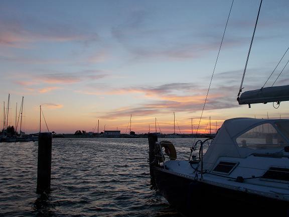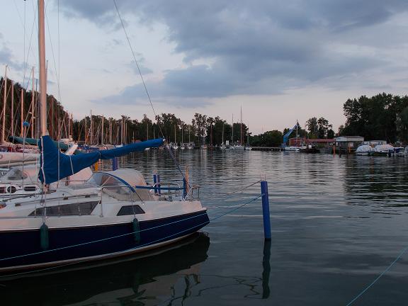 Die Höhe des Liegegeldes richtet sich nicht nach der Bootslänge sondern nach der Boxengröße, was zur Folge hat, das sich die dicksten Boote in die kleinsten Boxen quetschen um die zwei Euro zu sparen, die die nächst größere Box kosten würde. Ansonsten ist der Hafen nicht gerade idyllisch aber in Ordnung, hinter einer unscheinbaren Tür verbergen sich ungeahnt weitläufige Sanitärräume. Außerdem gibt es im gleichen Gebäude einen Yachtausrüster und mehrere Gaststätten. Und 200 oder 300 Meter weiter nördlich gibt es sogar einen Bäcker für die Frühstücksbrötchen.