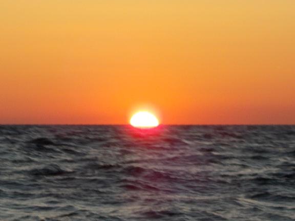 Wir beobachten den Sonnenuntergang. Irgendwie kommt mir die Szene aus „TITANIC“ in den Sinn: „Das war das letzte Mal, dass die Titanic das Tageslicht sah.“