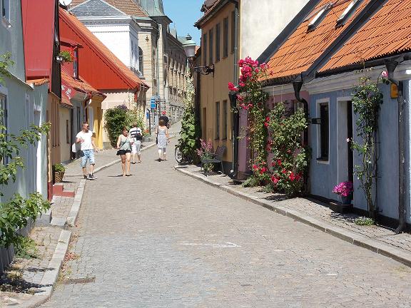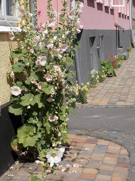 Zu erst suchen wir einen Yachtshop. Den gibt es am anderen Ende des Hafens. Ein paar genauere Karten für die Fahrt nach Schweden will ich schon haben. Zwei Fender werden auch noch gekauft, die bereits vorhandenen zwei Kugelfender und ein winziger Langfender waren nicht gerade reichlich. Im Yachtshop kann ich mit Karte bezahlen. An einem Automat hole ich noch ein paar Kronen und dann gibt es erst mal Eis. Schön sind die engen Straßen mit den niedrigen Häusern und den Blumen davor. Anna meint, das sind Malven. Wir bummeln noch etwas durch die Stadt, kaufen ein paar Lebensmittel und dann geht es zurück zum Hafen.