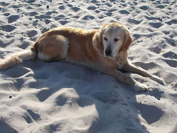 Es ist nicht mehr ganz so heiß, trotzdem gehen wir noch mal an den nahe gelegenen kleinen Strand. Schließlich ist Sommerurlaub, da muss man auch mal baden. Hunde dürfen hier einfach so mit an den Strand. Das Wasser ist aber eiskalt.
