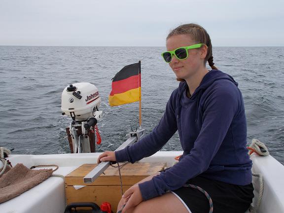 Aus dem Wasser backbords glotzt mich plötzlich ein Hund an. Bis ich realisiere, dass es eine Robbe ist, dauert es ein paar Zehntelsekunden. Sie taucht noch ein paar mal auf, so dass die Kinder sie auch noch sehen können, bloß für ein Foto reicht es nicht. Seehund, Sattelrobbe, Kegelrobbe, keine Ahnung was es war, aber nun haben wir in diesem Urlaub auch noch eine echte Robbe in freier Wildbahn gesehen.