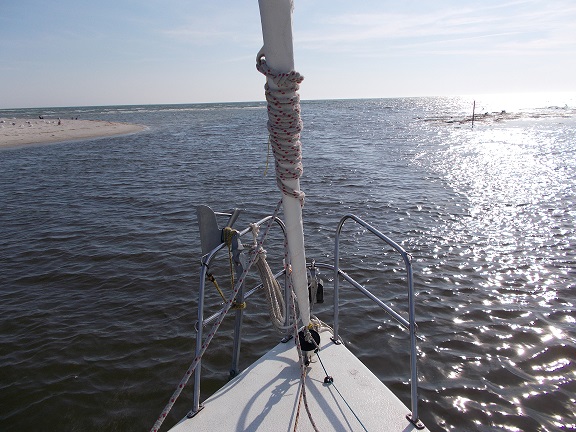 Heute fahren wir schon 8 Uhr 40 los, den Nothafen muss man bis 9 Uhr verlassen. Über Nacht wurden alle Seegrasinseln aus der Einfahrt fortgeschwemmt, die Fahrrinne wäre jetzt problemlos erkennbar.