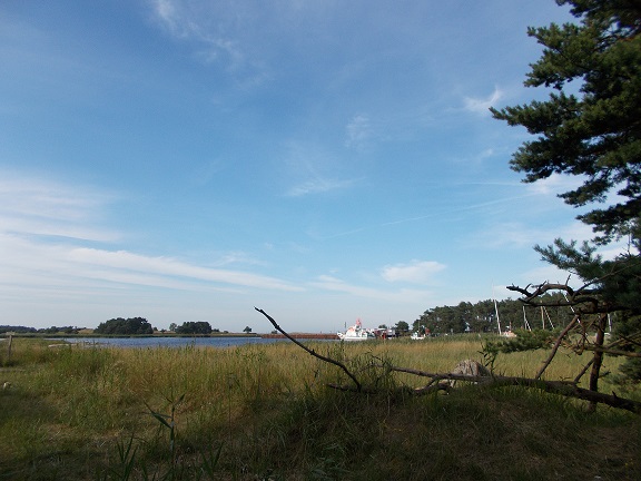 Nach dem Lebensmitteleinkauf – wir haben keine Kühlmöglichkeit an Bord und müssen deshalb oft einkaufen – finde ich an der Hauptstraße in Richtung Neuendorf sogar noch einen Geldautomaten, mit dem Liegegeld wäre es sonst knapp geworden. Irgendwie habe ich vertrieft, genügend Bargeld mit zu nehmen. Danach gehen wir noch zum Strand. Da ich es, im Gegensatz zu den Kindern, hier im eiskalten Wasser nicht lange aushalte, gehe ich noch eine Runde mit dem Hund, der leider auf ganz Hiddensee nirgends mit an den Strand darf.