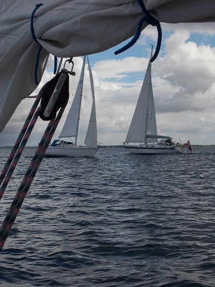 Durch den Brötchenservice kommen wir schon 10:15 Uhr los, gleich nach Verlassen des Hafens setzen wir die Segel, der Wind kommt ideal, mit Stärke 3 aus West.