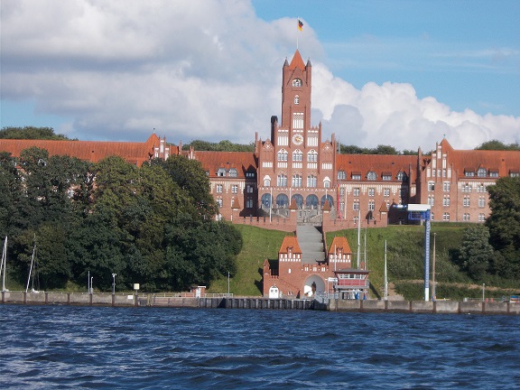 Das erste Stück auf der Flensburger Förde geht es genau gegenan. Der Wendewinkel ist mit der FAM nicht so toll, etwas mehr als 120 Grad. 4 Wenden nach Steuerbord, 3 nach Backbord. Dann biegt die Förde nach Norden ab und wir können einige Seemeilen mit halbem Wind segeln. Für den Knick nach Westen, an Marina Minde vorbei, nehmen wir den Motor, aber das Stück nach Südwest geht es wieder unter Segel. Zwar hoch am Wind, aber wir kommen trotzdem auf fast 4 Knoten, viel schneller wären wir mit Motor auch nicht. Ein echtes Dampfschiff kommt uns entgegen, nicht so ein Teil mit Schaufelradatrappe wie auf der Schlei.