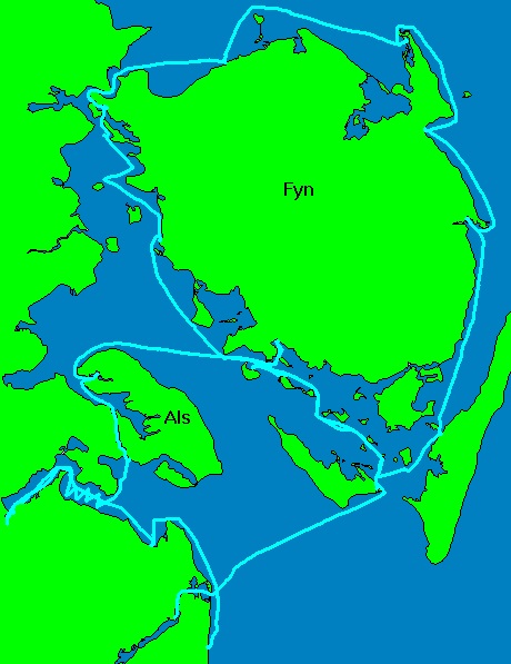 Die Nordspitze Fünens wird von einer Halbinsel gebildet, die nun zu umrunden ist. Anschließend geht es wieder Richtung Süd. Hilfreich ist hier ein Windkraftpark im Norden, dessen Windgeneratoren alle in einer Reihe angeordnet sind. So lange man die achtern genau hintereinander sieht, ist man auf dem richtigen Kurs.