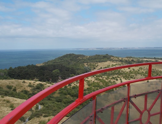 Deshalb ist heute mal Landgang angesagt. Über Kloster geht es auf den Dornbusch zum Leuchtturm. Wir haben Glück. Obwohl die Aussichtsplattform nur bis Windstärke 6 geöffnet ist und die Anzeige über dem Eintrittskartenschalter Windstärke 7 anzeigt, ist noch geöffnet. Der Ausblick von hier oben ist wie immer schön, aber der Wind ist wirklich heftig.