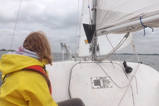 Zwei Tage haben wir noch, dann ist der Urlaub zu Ende. Zwei Wochen sind eigentlich zu kurz, aber die Mädels haben beide nicht mehr Urlaub. Wir planen, heute einen Abstecher nach Greifswald oder Kröslin zu machen, dafür ist der Wind günstig. Unter der Ziegelgrabenbrücke durch geht es wieder mit gelegtem Mast. Danach geht es mit Segeln weiter, der Wind kommt aus Nord bis Nordost. Es ist ein schönes entspanntes Segeln.