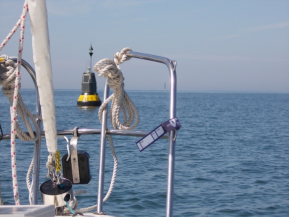 Gegen 11:00 geht es los. Unter Motor, der Wind kommt immer noch aus Nordost. Nicht sehr stark, die ebenfalls aus Nordost kommenden Wellen sind kein Hindernis. Die Fahrt verläuft ziemlich ereignislos. Man sieht bei dem trüben Wetter eigentlich nur am Meilenzähler des GPS, dass man vorwärtskommt.