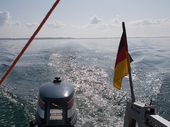 Da der Bus meines Sohnes zum Bahnhof recht zeitig fährt, fahren wir schon kurz nach neun los. Wie vorhergesagt ist fast kein Wind. Unter Motor verlassen wir die lange schmale Bucht des Hafens von Heiligenhafen. Obwohl wir Fehmarn westlich umrunden wollen, müssen wir erst mal weit nach Osten, Abkürzen ist hier nicht möglich. Auch zu Fehmarn sollte man ausreichend Abstand halten, die westliche Küste hat einige mit Steinen versehene Flachs zu bieten. Da wir dazu nach Westen müssen, können wir sogar ein Stück segeln.